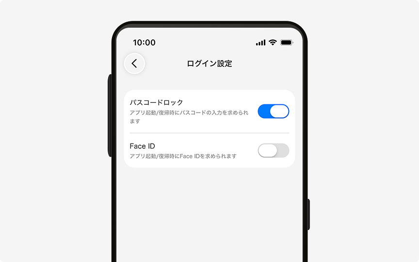 Face ID、Touch ID、生体情報(指紋、顔 など)認証を利用して、安全にログインすることができます。