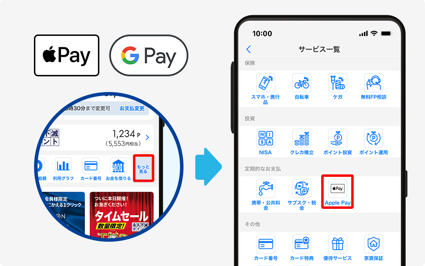 メリット5 Apple Pay / Google Payをアプリから簡単に設定できます