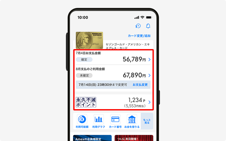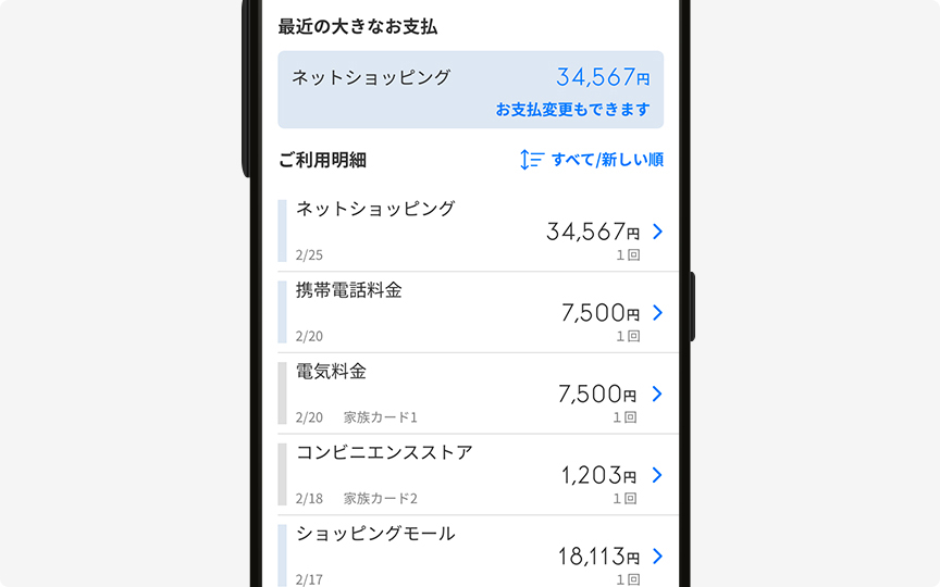 カードのご利用状況を一目で確認いただけます。