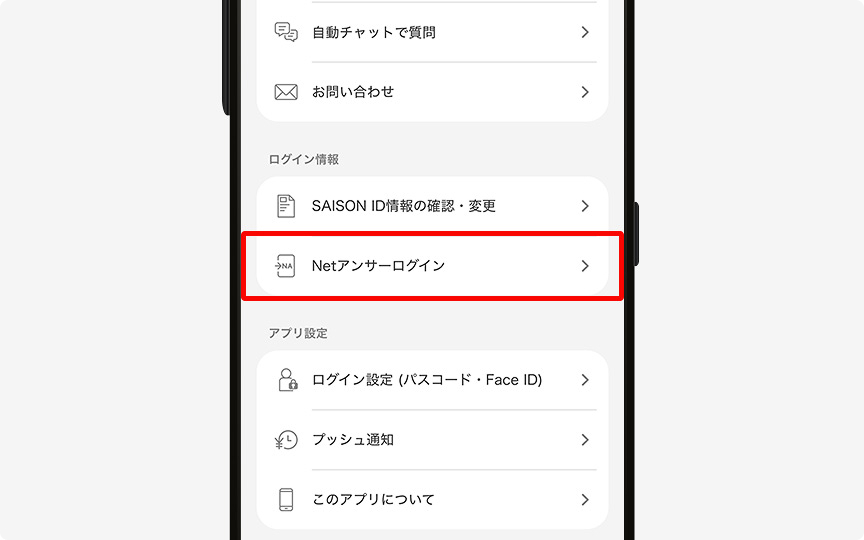 NetアンサーのID/パスワードでもアプリにカード登録(ログイン)できます。