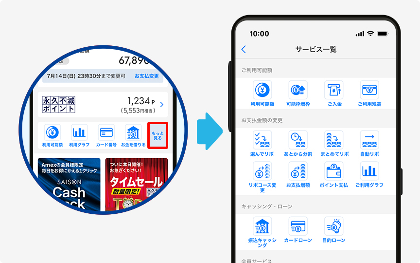 メリット3 セゾンカードのさまざまなサービスをアプリからご利用できます